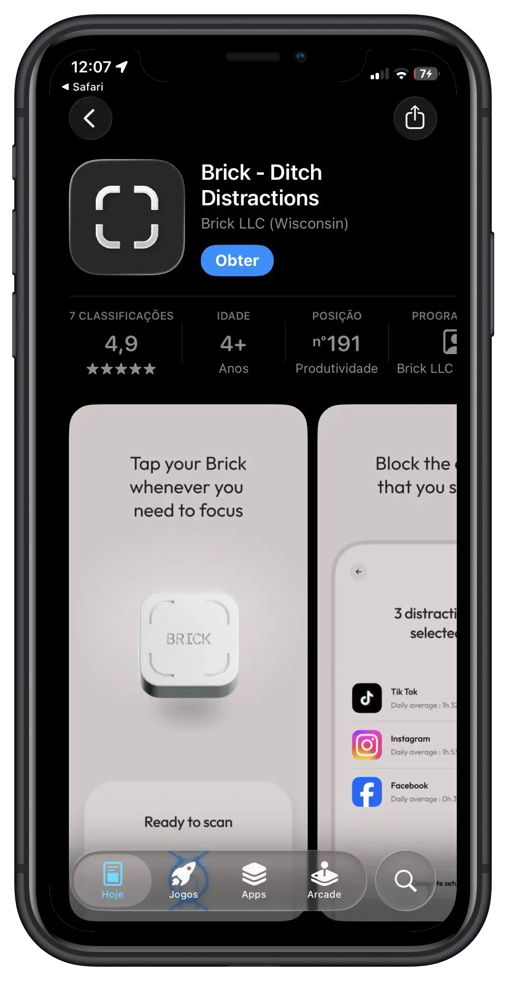 Ao fim de umas semana de uso, o seu tempo de ecrã diário cairá quase para metade. O Brick pode transformar o seu telemóvel novamente numa ferramenta utilitária, em vez de uma máquina de slot de dopamina.