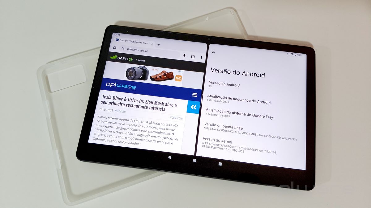 Com o Android 15 de fábrica, o tablet oferece as mais recentes funcionalidades do sistema operativo da Google, incluindo gestão de permissões mais refinada, temas personalizados e integração com dados de saúde. A experiência é limpa e intuitiva, sem camadas pesadas ou bloatware desnecessário.