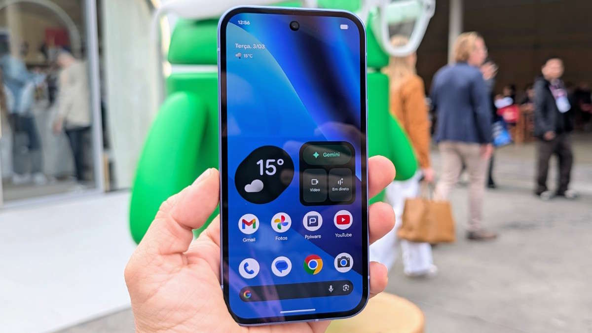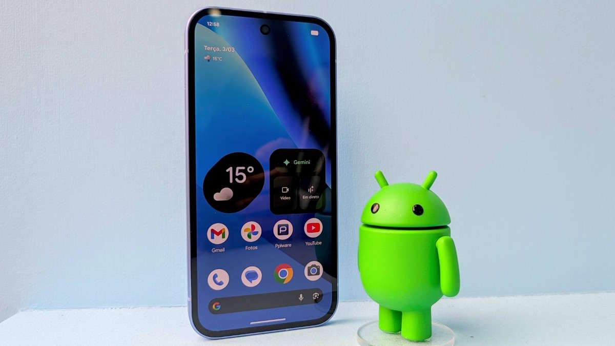 O Pixel 10a é a porta de entrada para o ecossistema Gemini. O assistente de IA está integrado em todo o sistema, permitindo interações por voz muito mais naturais através do Gemini Live.