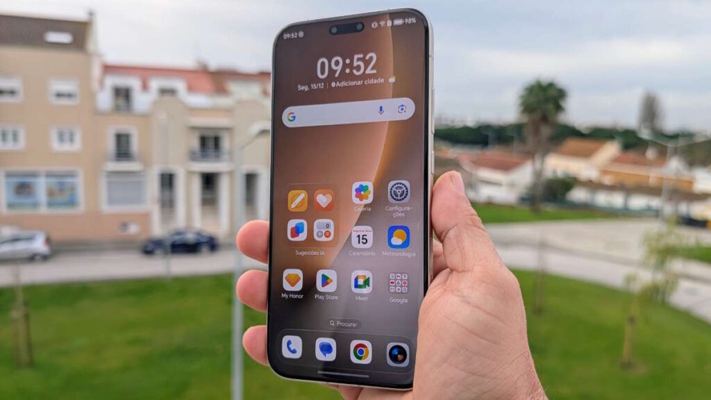 Após alguns dias de uso intensivo, nota-se um conforto visual superior, especialmente em ambientes com pouca luz. A proteção é garantida pelo HONOR NanoCrystal Shield, que promete uma resistência a quedas até 10 vezes superior.