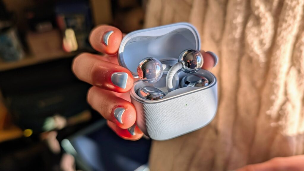 No uso diário, esta alteração traduz-se numa sensação de leveza impressionante. Com apenas 5,1 gramas por auricular, o peso é praticamente impercetível. A distribuição de peso foi otimizada com base em mais de 10.000 amostras de orelhas, garantindo que o dispositivo se mantém estável sem exercer pressão excessiva no canal auditivo ou na cartilagem.