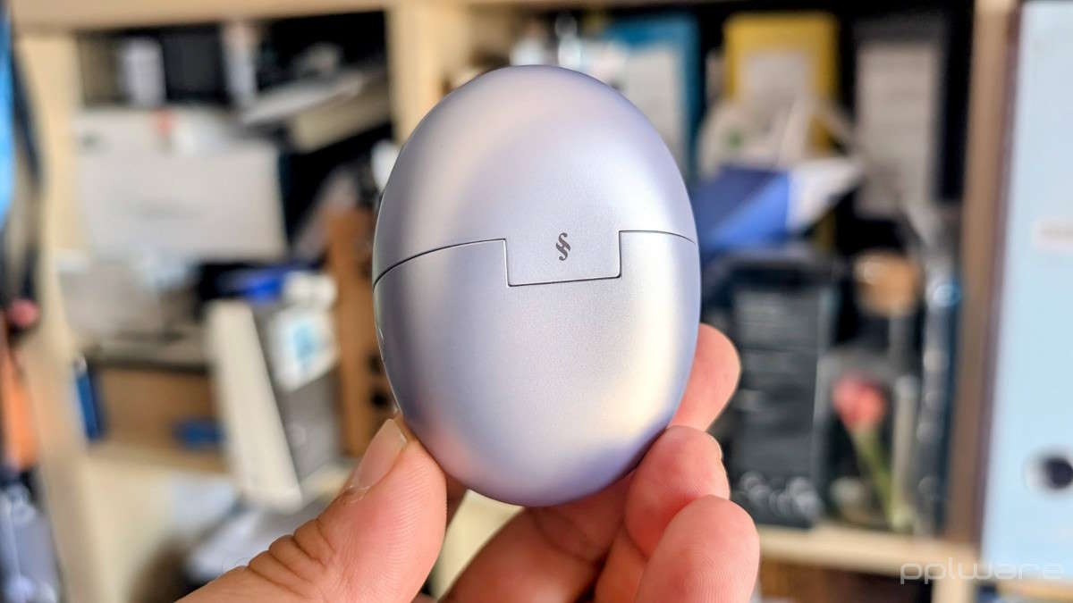 O estojo de carregamento também merece destaque. Com um design arredondado e acabamento mate, cabe facilmente no bolso e tem um aspeto moderno. A caixa inclui ainda adaptadores de silicone que ajudam a fixar melhor os auriculares, sobretudo durante treinos ou corridas, adaptando-se a cada utilizador de forma única.