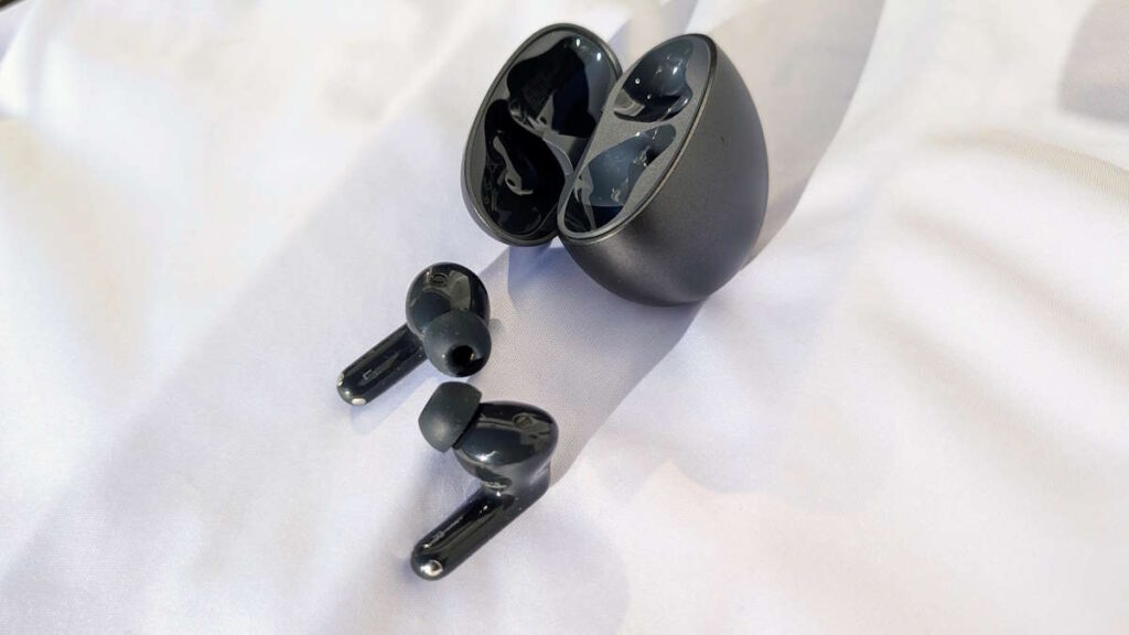 A caixa de carregamento, discreta e também leve, oferece ligação USB-C e um design fácil de transportar no bolso. Em termos técnicos, os auriculares utilizam um driver dinâmico de 11 mm com quatro ímanes, concebido para entregar graves fortes sem comprometer a clareza dos médios.