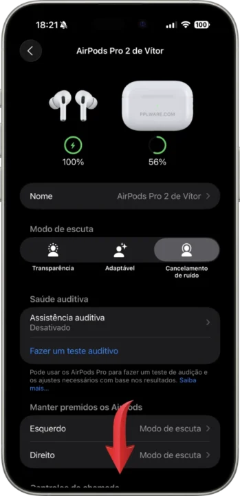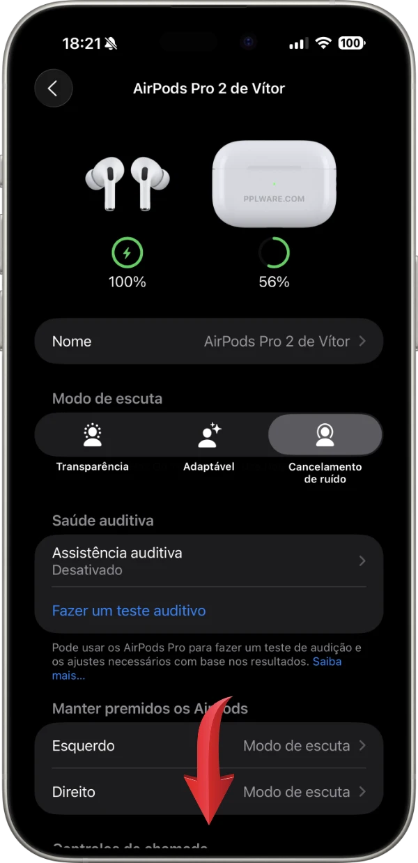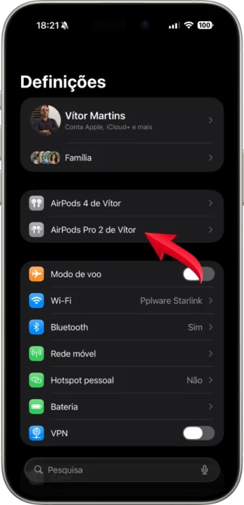 Também podem escolher nas Definições logo o vosso modelo de AirPods e entrar na área de gestão dos auscultadores, conforme imagens acima.