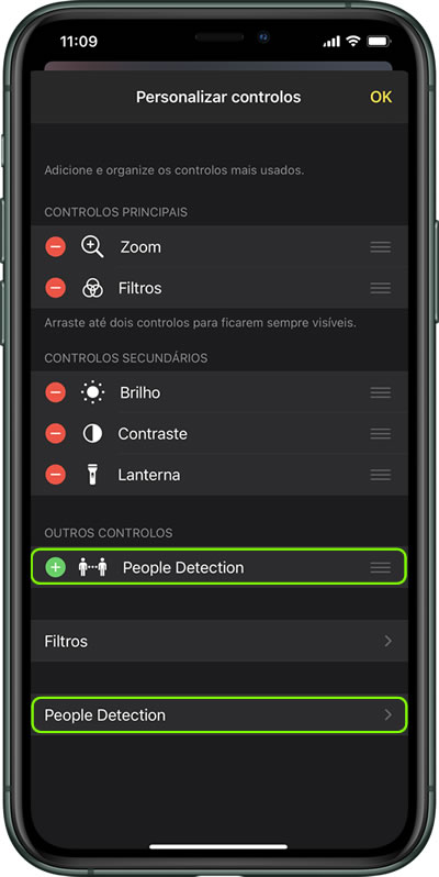 Clicamos no botão + e adicionamos aos ícones e serviços disponíveis na Central de controlo.