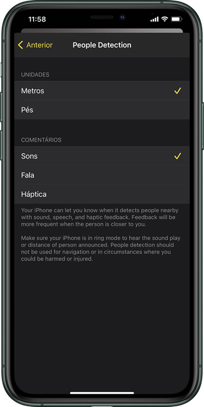 Outro recurso interessante incluído no iOS 14.2 é uma nova opção “Deteção de Pessoas” na app Lupa. Esta app, desconhecida de muitas pessoas, está disponível como uma ferramenta de acessibilidade que usa a câmara do dispositivo para ajudar o utilizador com problemas de visão.