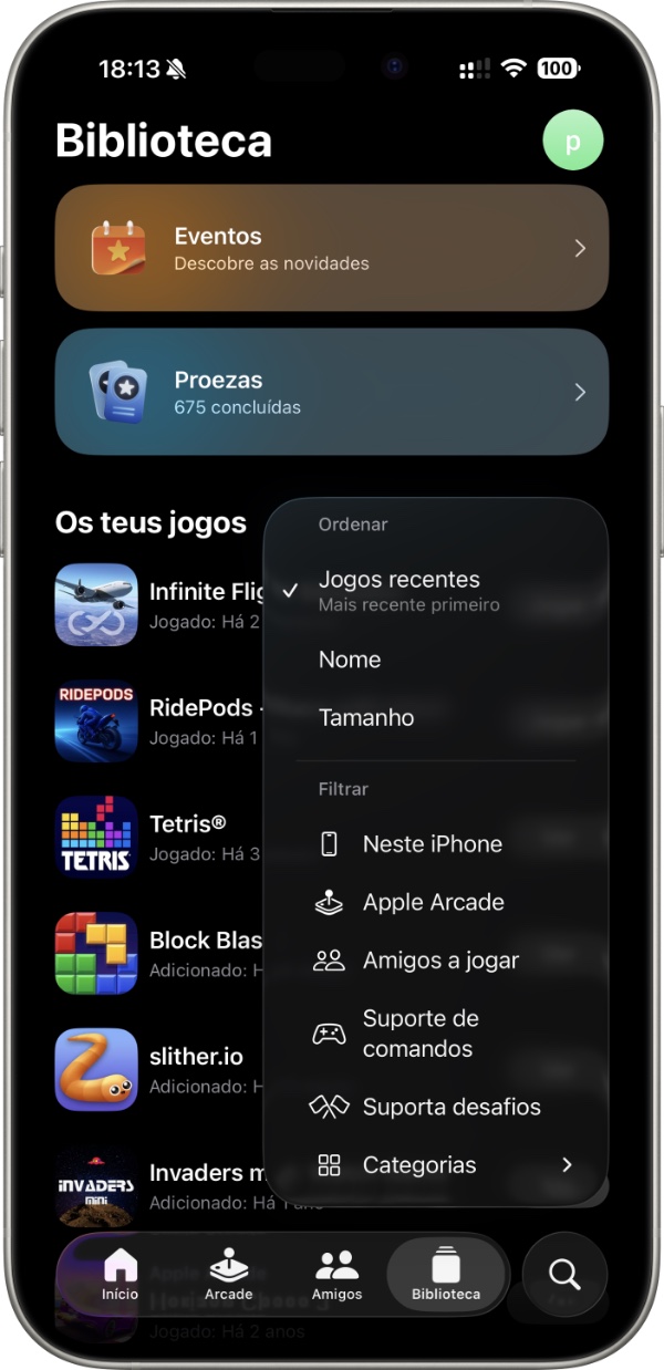 - A aplicação Jogos acrescenta novas opções de ordenação. Agora é possível ordenar por tamanho, além de ordenar por nome e pelos jogos recentes.