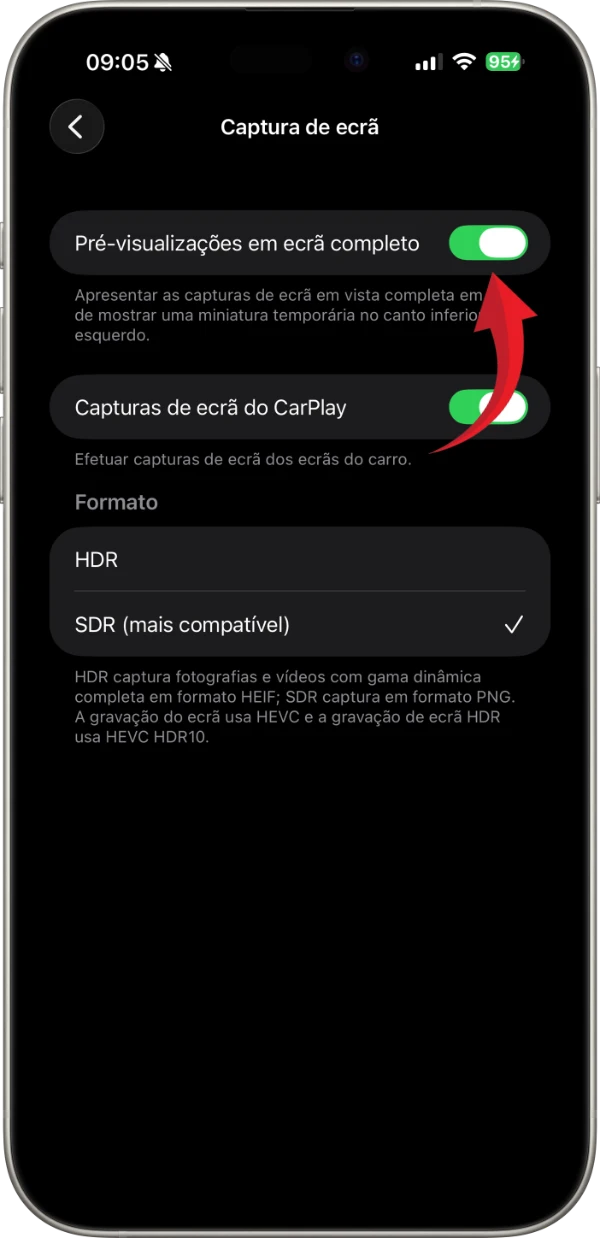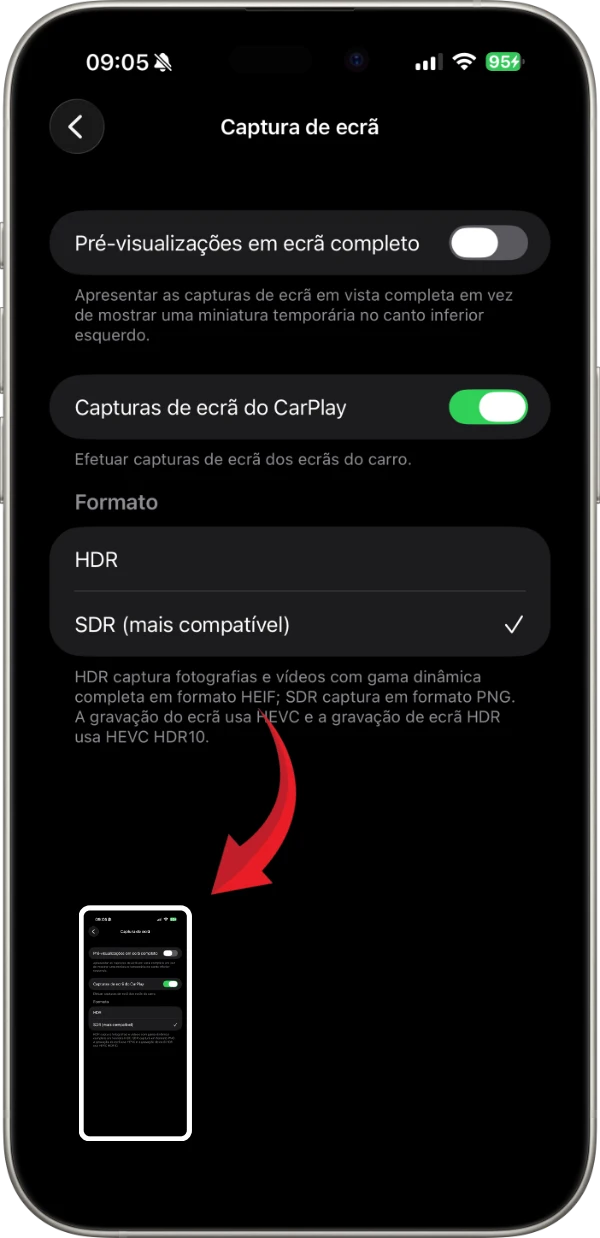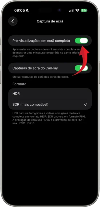Sim, temos essa opção. Para isso vamos a Definições > Geral >Captura de ecrã e desligamos a opção Pré-visualizações em ecrã completo.
