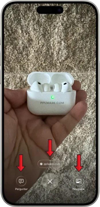 - Depois da captura, surgem opções na parte inferior: Perguntar e Pesquisar.