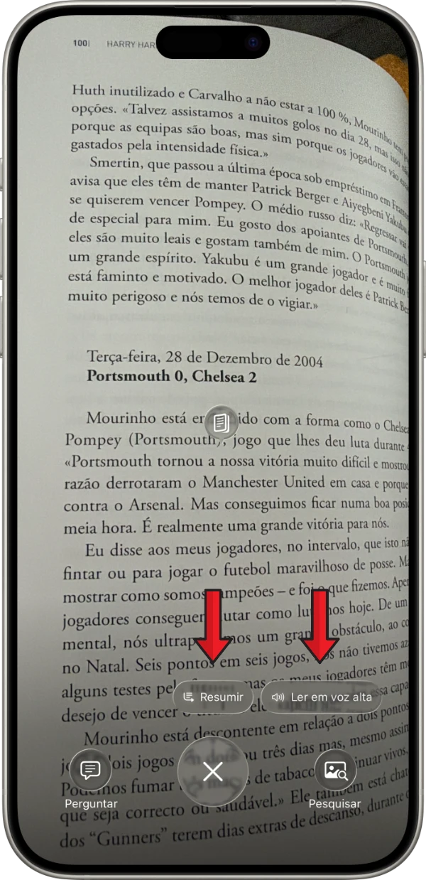 - Depois da captura, surgem opções na parte inferior: Perguntar e Pesquisar.