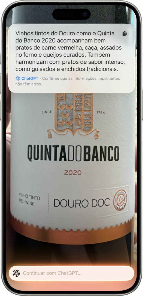 - Fotografar o rótulo de um vinho e pedir à IA sugestões de pratos para acompanhar.
