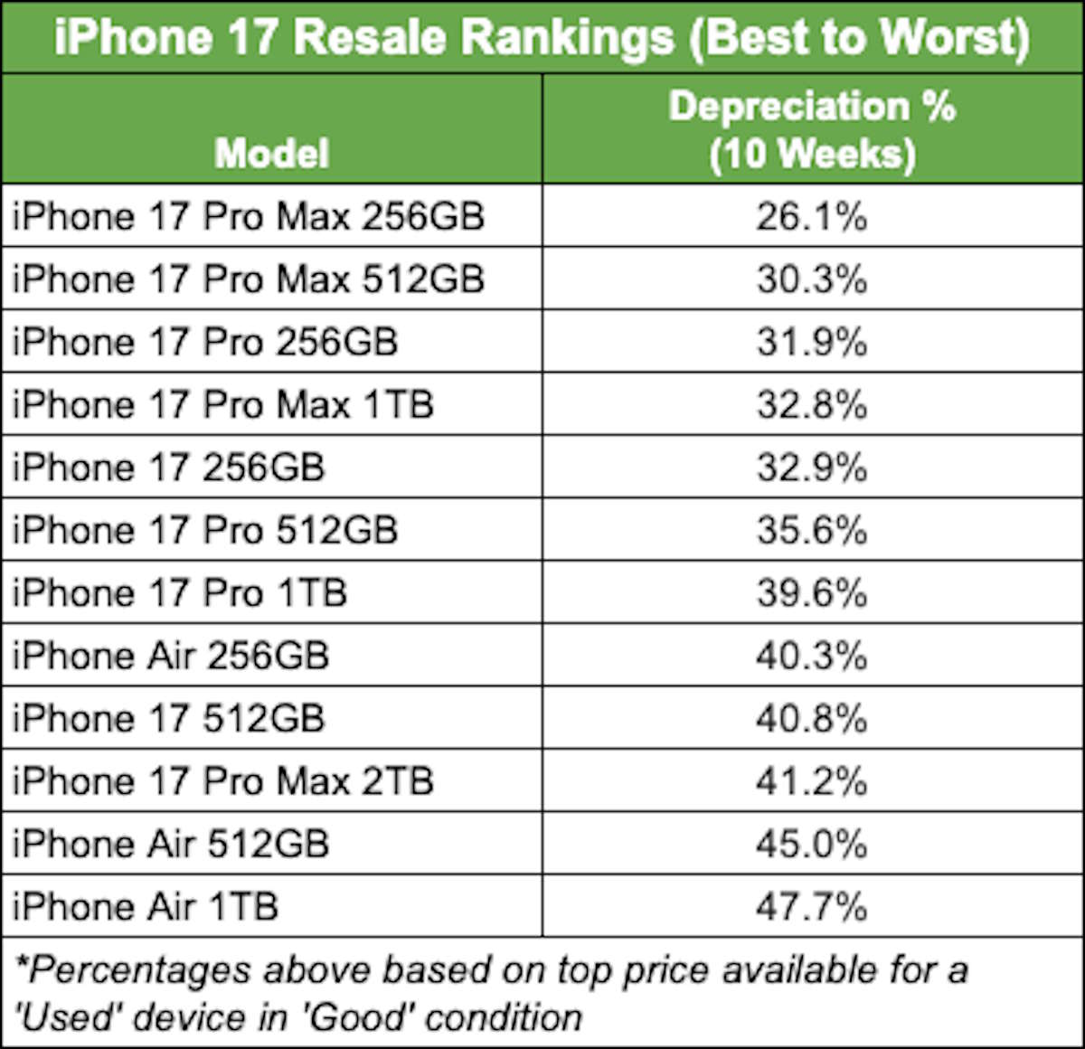 Embora o período de dez semanas seja demasiado curto para se poderem tirar conclusões definitivas, os dados iniciais sugerem que este novo iPhone poderá ser um modelo menos estável em termos de valor no mercado de segunda mão.