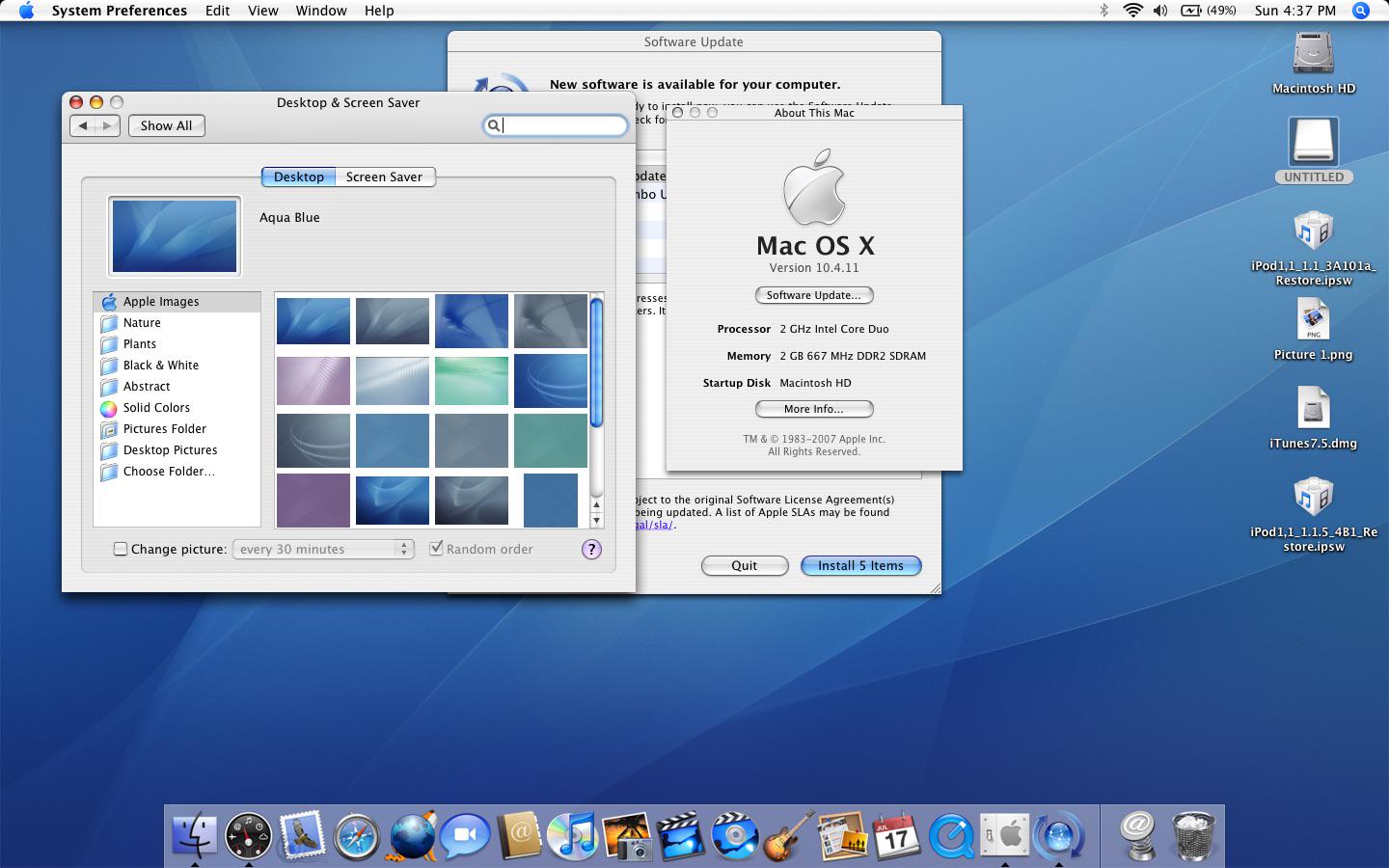 O Mac OS X 10.4.11 é a versão final do sistema operativo Mac OS X Tiger, que Inclui correções gerais do sistema operativo para estabilidade e compatibilidade, atualizações de segurança e a versão do navegador Safari da época. Os principais recursos introduzidos na versão original do Tiger incluem a pesquisa Spotlight, o Dashboard, o iChat AV e o Automator.