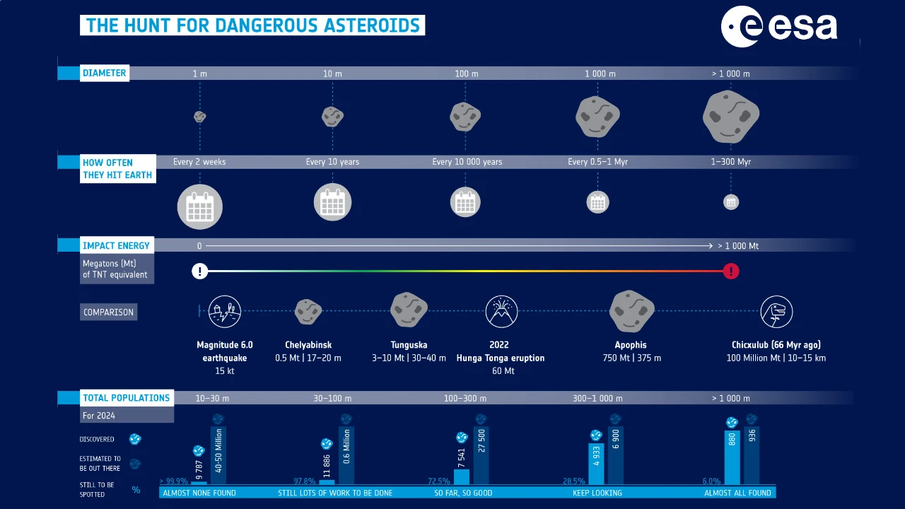 Infografia com a explicação da perigosidade do asteroide. Imagem ESA.