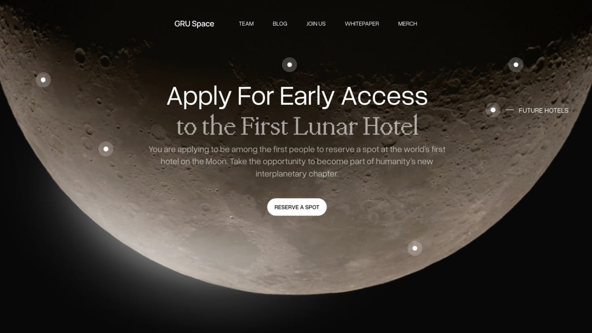 A Galactic Resource Utilization Space (GRU), fundada por Skyler Chan, licenciado pela Universidade de Berkeley, disponibilizou o website de reservas, esta semana, revelando detalhes sobre a arquitetura do hotel.