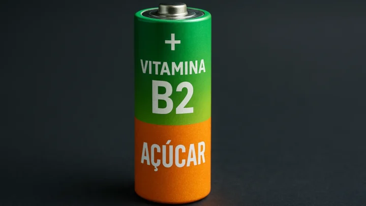 Investigadores criaram uma bateria de fluxo que utiliza vitamina B2 (riboflavina) e glicose como componentes-chave. O design imita o metabolismo humano, onde a riboflavina transporta eletrões para gerar energia.