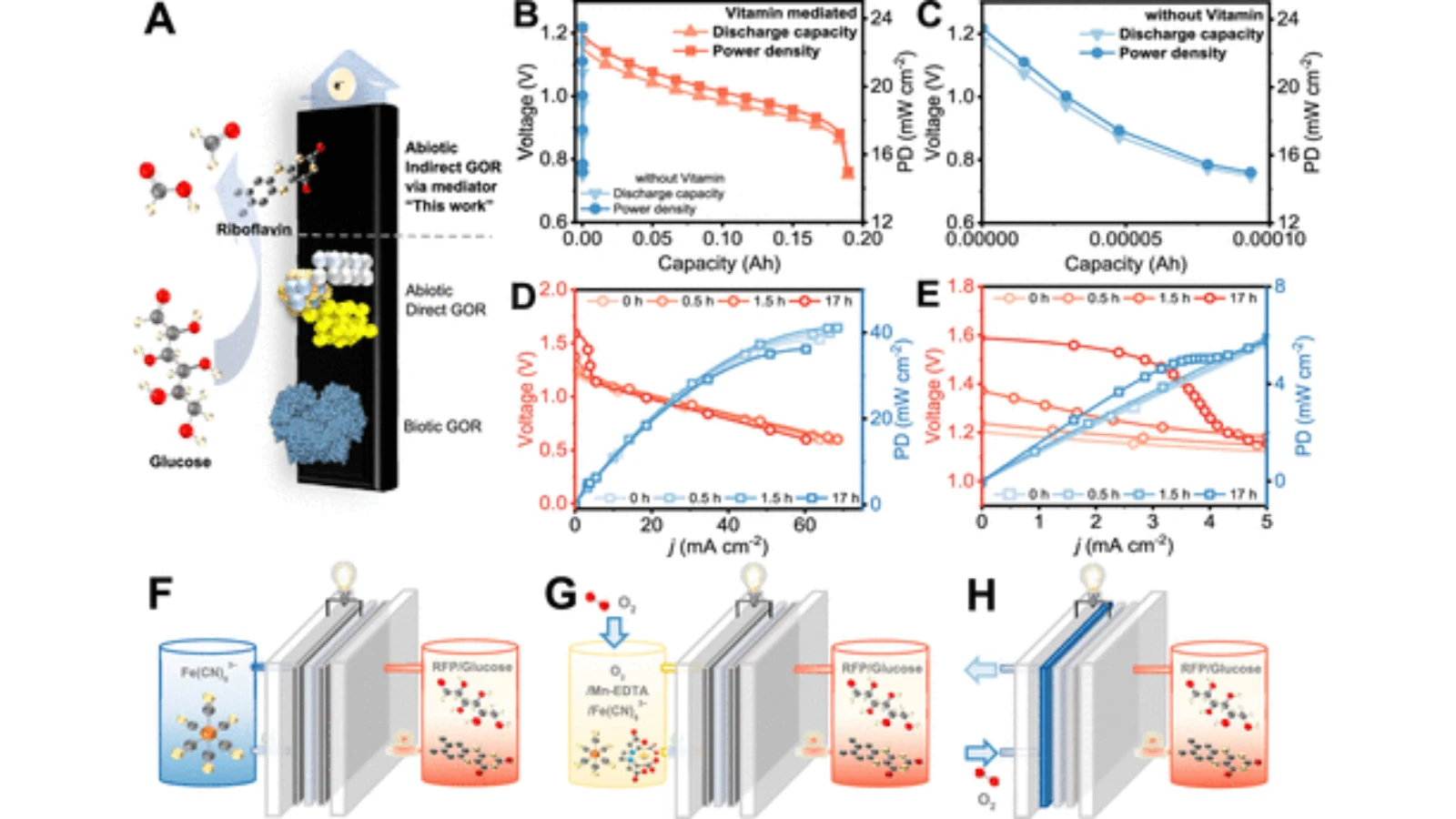 O estudo demonstra uma bateria de fluxo que utiliza vitamina B2 e glicose para gerar eletricidade, mostrando desempenho comparável a sistemas tradicionais de oxidação de glicose e explorando diferentes configurações de eletrólito e cátodo. Os resultados indicam que combinações bio-inspiradas podem fornecer uma alternativa sustentável e eficiente para armazenamento energético.