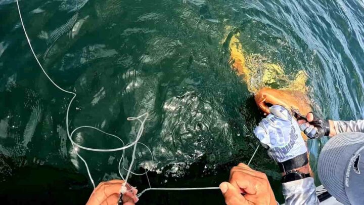 Depois de tirarem algumas fotografias da criatura, com um corpo de 1,8 metros, os pescadores soltaram-na e, mais tarde, descreveram-na a especialistas marinhos, que concluíram que não se tratava de um peixe-dourado enorme.