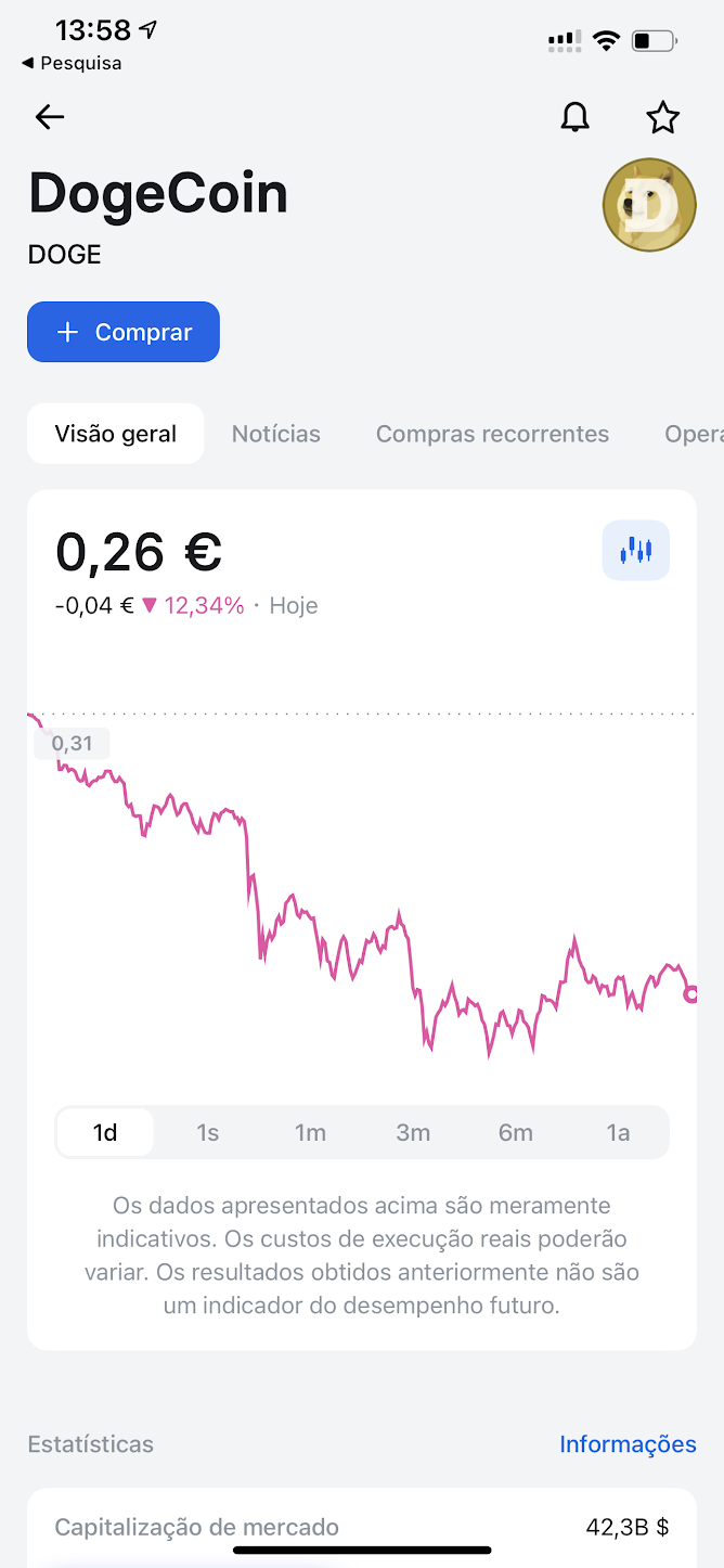 - Clique no botão investir e escolha Dogecoin