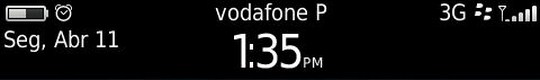 Na parte superior está a zona das informações gerais, normalmente presente em qualquer telemóvel. Aqui é dada informação quanto ao nível de carga da bateria, data e hora, operador e, caso esteja ligado a alguma rede WiFi, o nome da rede, nível de cobertura de rede e modo como está ligado (GPRS, EDGE ou 3G).