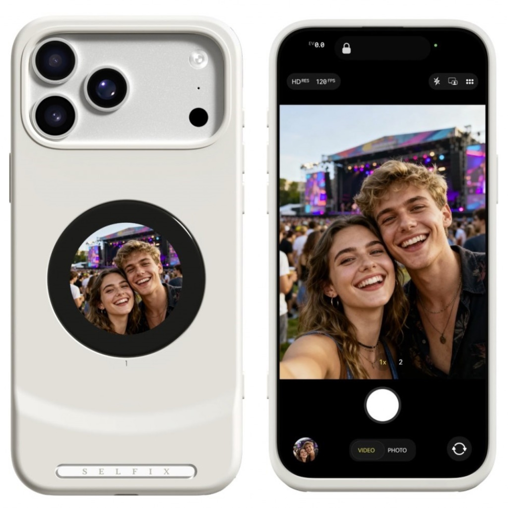 Com a nova capa, os utilizadores já não precisam de tirar selfies com a câmara traseira do iPhone às cegas, sem terem uma previsão do resultado.