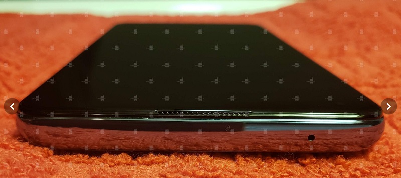 Já na parte frontal, verifica-se a perfuração de ecrã destinada ao sensor da câmara frontal, e ainda os microfones na parte superior e inferior.