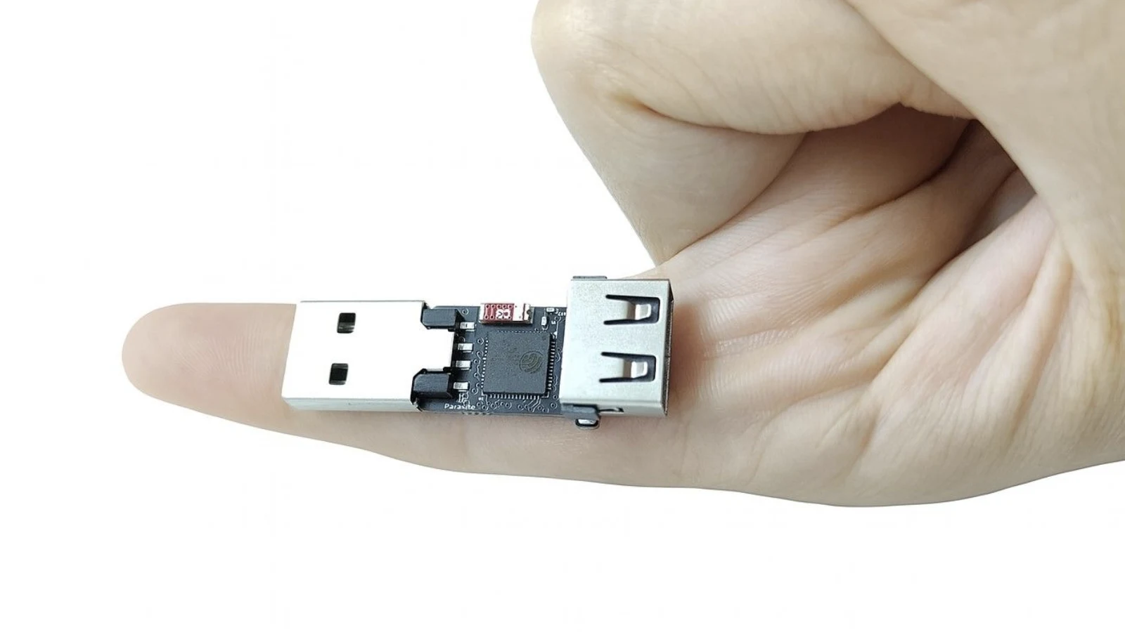 Com toda a propriedade classificado como um parasita, este pequeno dispositivo USB funciona como uma ponte que interceta as ligações entre um periférico e um PC.