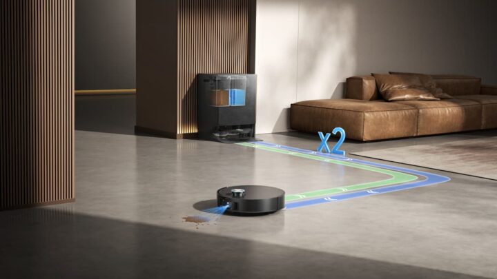O destaque vai para o braço robótico GapFree AI, guiado por sensores infravermelhos, que alcança paredes e móveis a 0 mm, garantindo limpeza total de arestas e cantos numa única passagem.