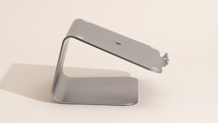 Eleva o portátil para alinhá-lo com o nível dos olhos. Reduz a inclinação do pescoço e a tensão nas costas. Quando combinado com teclado e rato externos, bem como com um smartphone stand, melhora bastante a ergonomia do setup.