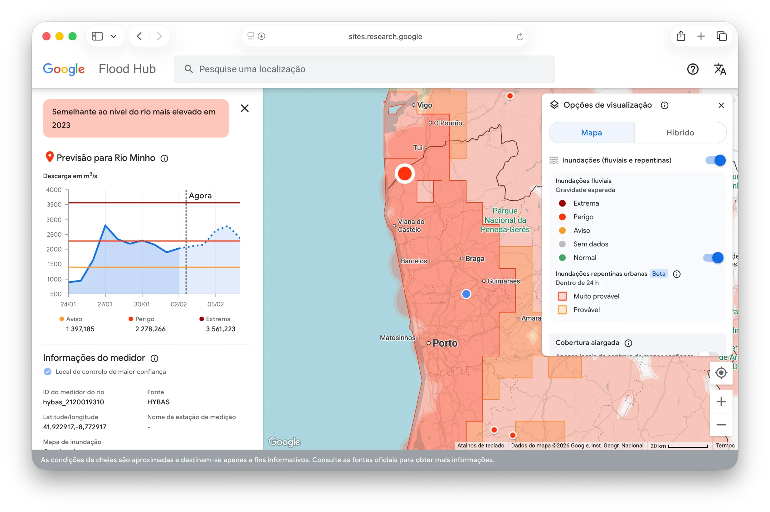 Mapa de risco de inundações da Google