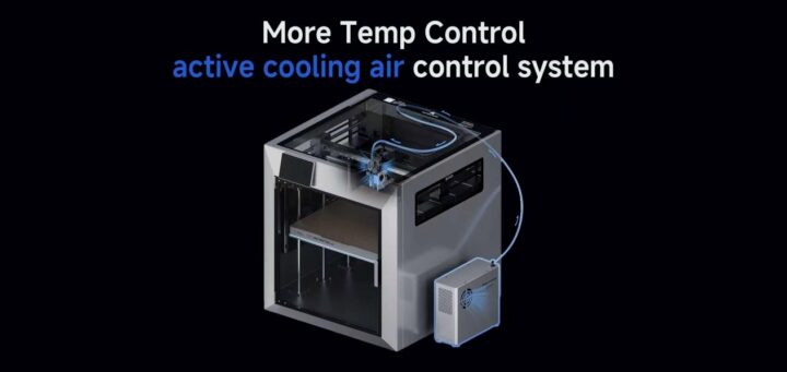Outro elemento destacado pela QIDI é o sistema de arrefecimento do cabeçote, designado “Polar Cooler”. Este sistema foi concebido para manter a zona do extrusor e do filamento mais estável do ponto de vista térmico, contribuindo para reduzir entupimentos e melhorar a fiabilidade do fluxo, sobretudo em ambientes de impressão com câmara aquecida.