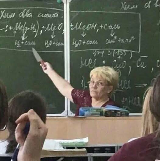 Não se contendo mais, o diretor interrompe, respira aliviado e diz à professora:
