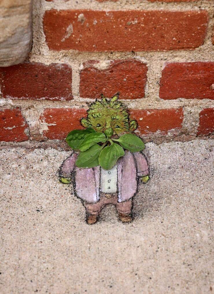 O homem levanta-se espantadíssimo e sem roupa, pula como pode pela janela e cai em cima de uma planta com espinhos.