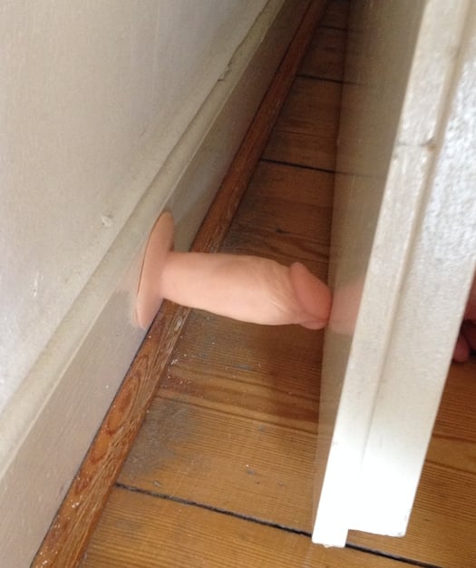 Nesse momento passa o comboio (ela mora junto à estação de comboios) e o armário desmonta-se todo.