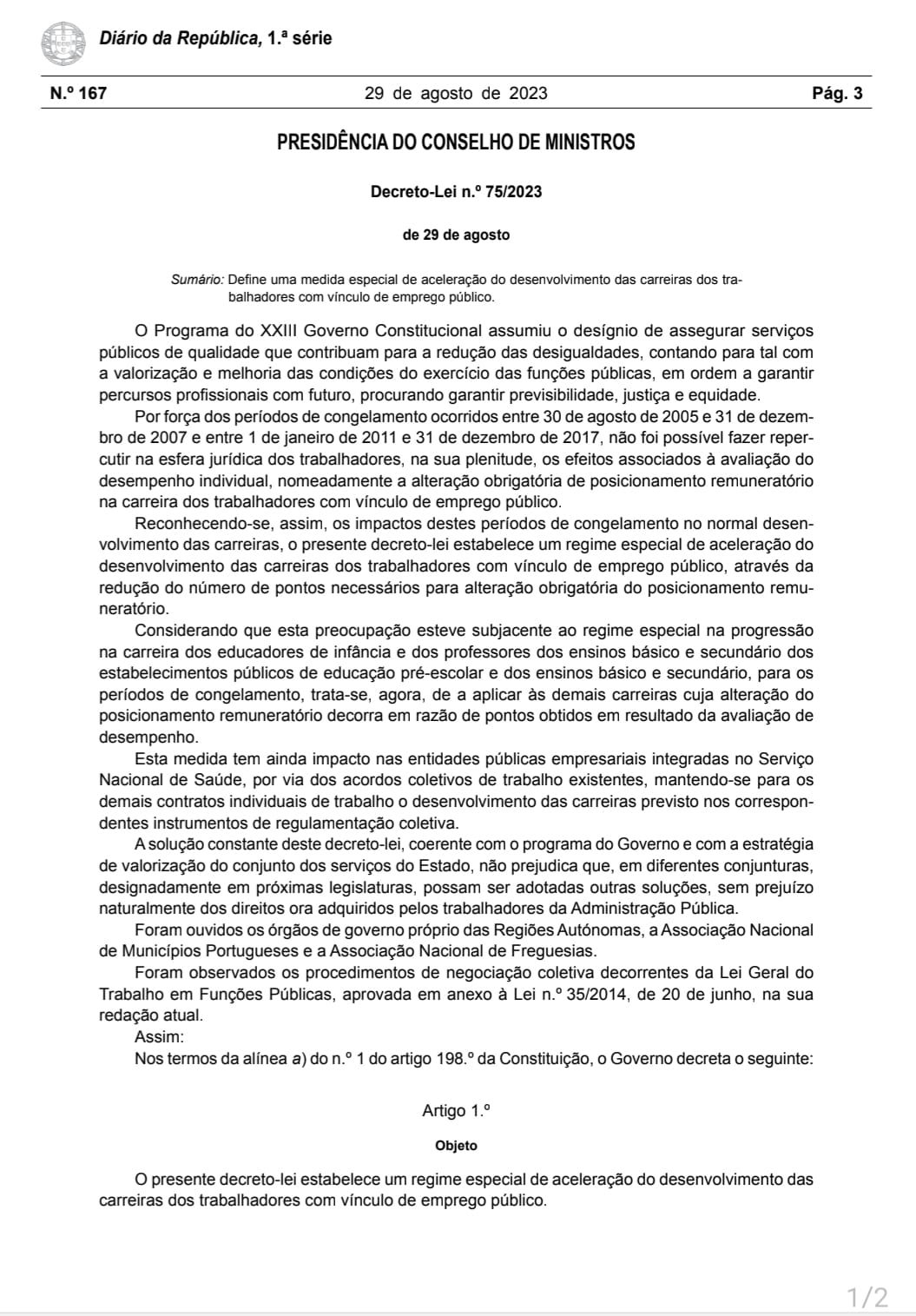 Um “mecanismo” de aceleração de progressões foi publicado esta terça-feira em Diário da República. No total, chegará a quase 350 mil trabalhadores, sendo que 72 mil funcionários públicos irão progredir na carreira já em 2024.