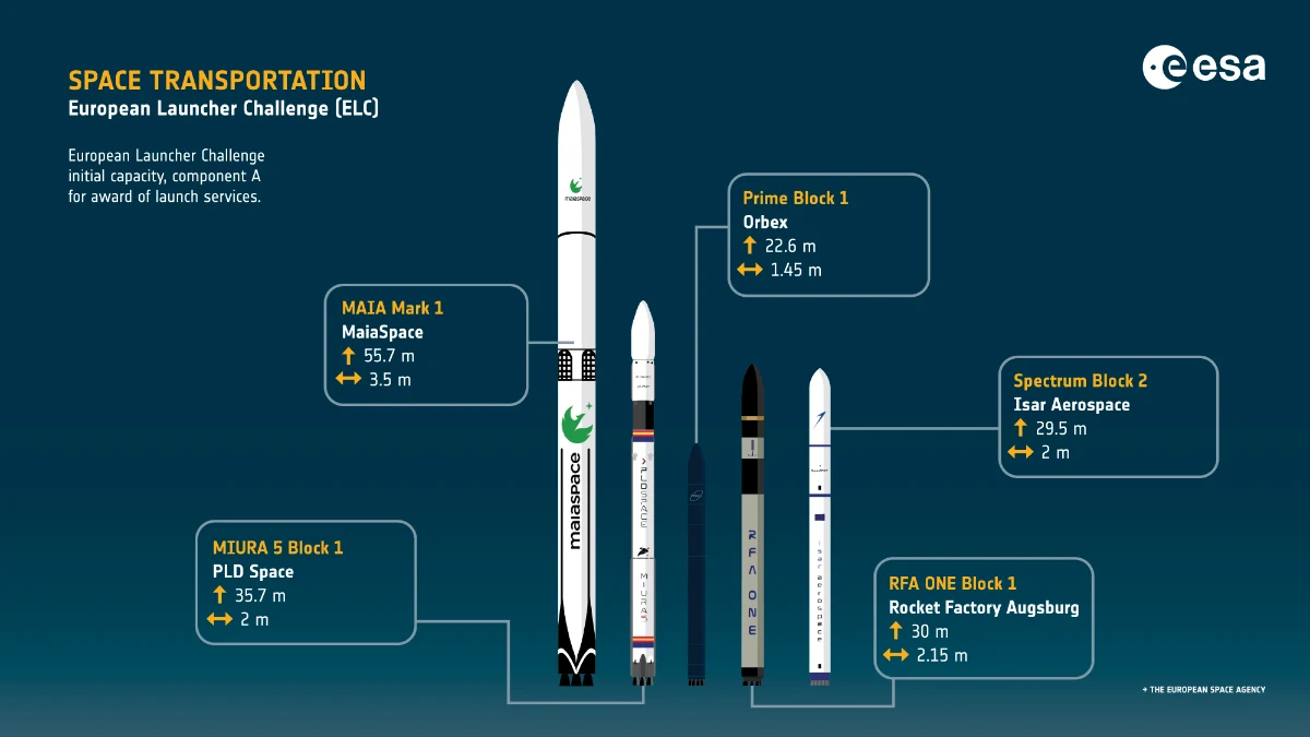 - MaiaSpace, francesa, focada no desenvolvimento de tecnologia de aterragem vertical reutilizável, essencial para reduzir os custos por lançamento.