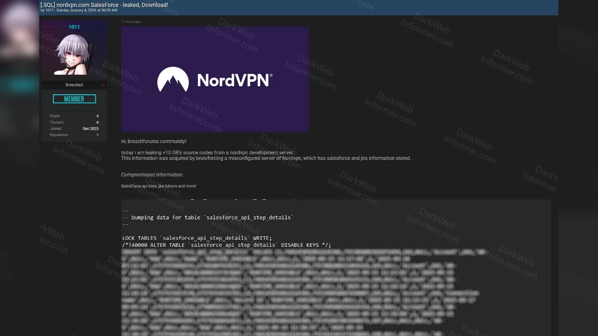 No dia 4 de janeiro de 2026, o hacker com o pseudónimo “1011” divulgou, num fórum da dark web, provas de acesso à infraestrutura da NordVPN.