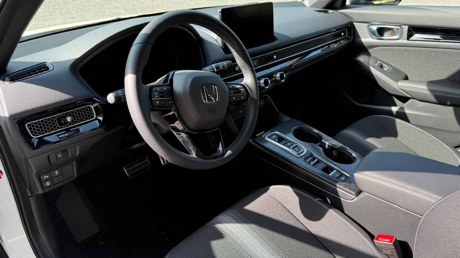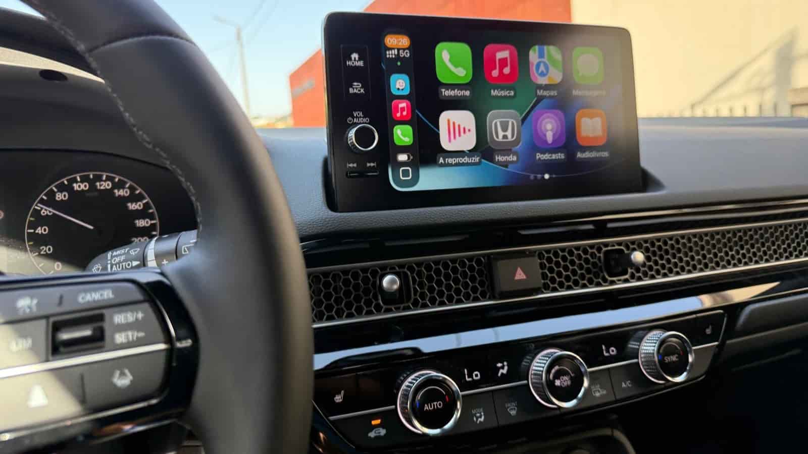 Por dentro, o Civic revela um salto qualitativo notável. O painel de instrumentos digital de 10,2 polegadas, o ecrã central tátil de 9 polegadas com conectividade Apple CarPlay e Android Auto, e os comandos físicos bem integrados demonstram uma atenção ao detalhe e à ergonomia que merece destaque.