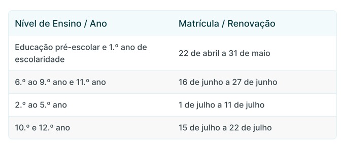 De acordo com as informações, as matrículas para o 10.º e 12.º anos de escolaridade começam hoje e terminam a 22 de julho.