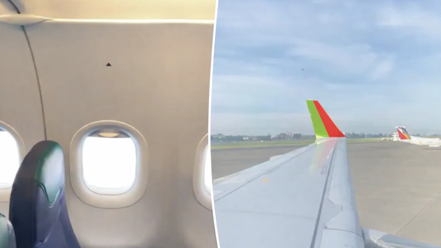 O que significam os pequenos triângulos dentro dos aviões, por cima das janelas?