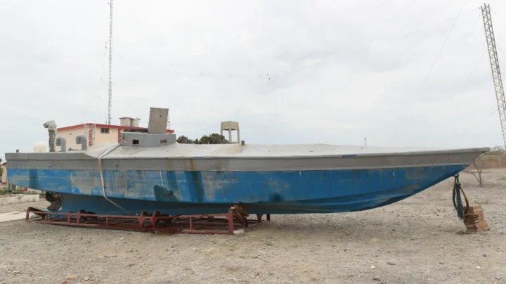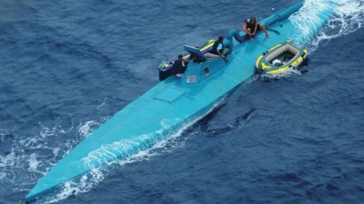 Um exemplo de embarcações semi-submersíveis do narcotráfico interceptadas em alto mar, usadas para transportar grandes quantidades de cocaína com baixo perfil de deteção.