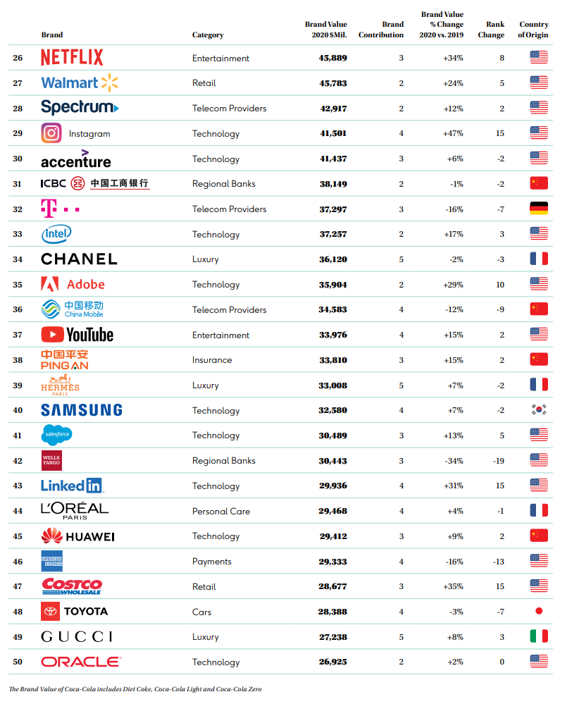 “O ranking inserido no relatório 2020 BrandZ Global Top 100 atribui…”