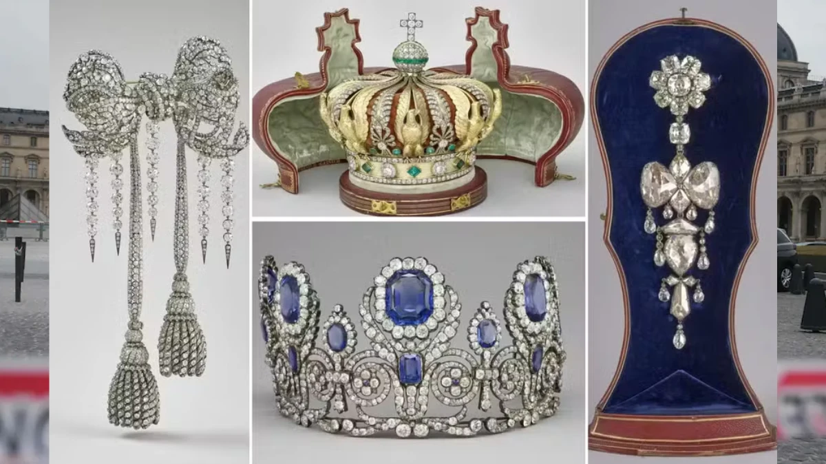 Entre as peças roubadas no assalto ao Louvre estavam joias históricas avaliadas em milhões de euros, incluindo uma coroa e um colar da rainha Maria Amélia, adornados com safiras e quase 2.600 diamantes, e um conjunto de esmeraldas e diamantes da imperatriz Maria Luísa. Também desapareceu um broche da imperatriz Eugénia, adquirido pelo museu por 6,72 milhões de euros, embora a sua coroa tenha sido recuperada danificada horas depois. O diamante de 140 quilates, avaliado em cerca de 56 milhões de euros, acabou por escapar ao roubo.