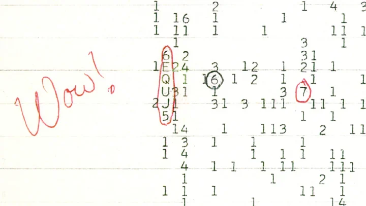 O famoso sinal “Wow!”, sublinhado a vermelho nos registos de 1977 e que se tornou um ícone para os defensores da procura de inteligência extraterrestre (SETI), continua até hoje a ser um dos sinais de rádio mais enigmáticos de sempre.
