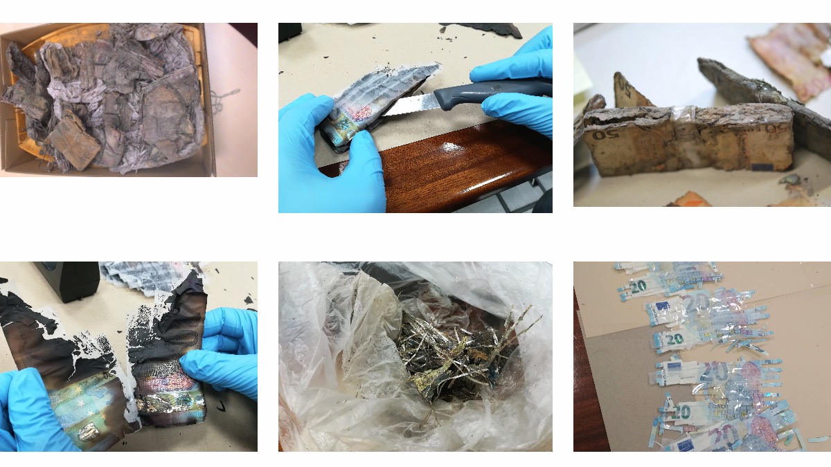Caso sejam “afogadas”, juntem as notas. Sequem, quer seja com aquecimento ou ao sol (quando aparecer…). Depois de secas, principalmente as de maior valor, perdem cores, o papel fica parece tecido. Confirmem que não há humidade. Juntem todas, num saco de plástico, que possa ser selado. Se possuírem, uma daquelas máquinas de vácuo (para alimentos), usem-no. Depois, tanto podem ir, a uma tesouraria, do Banco de Portugal, como podem enviar, pelos CTT (Correio declarado como sendo dinheiro e o valor, presumido!!!!), para Lisboa. Nesse envelope, enviem o saco, selado, das notas, uma fotocópia, do vosso CC e uma folha, com o vosso IBAN (que esteja, em nome, do CC). Se forem, à tesouraria, levem o IBAN, que podem apresentar, o CC. Depois de validadas (no Carregado), o Banco de Portugal irá transferir, o valor, validado, das notas, que enviaram.
