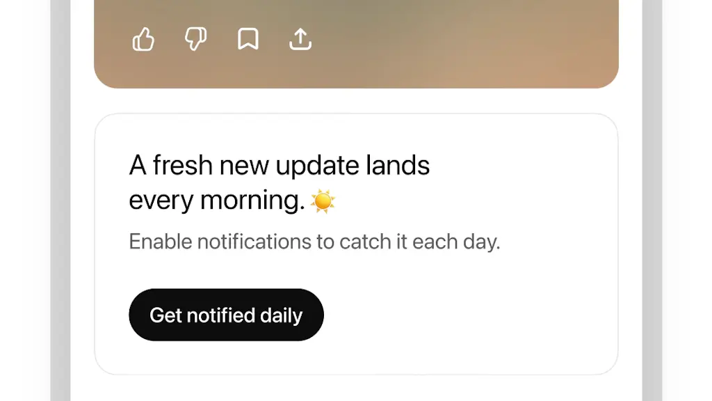 A personalização é construída com base em interações simples. O utilizador pode avaliar cada sugestão com um polegar para cima ou para baixo, solicitar a inclusão de um tópico específico no próximo resumo ou indicar o que não considera útil.