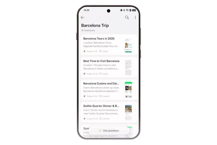 Pode ir ainda mais longe: ao apontar a câmara para algo como um cartaz de um concerto, o AI Mind Space consegue digitalizar a informação diretamente pelo visor, sem precisar de tirar uma fotografia, detetando de imediato dados importantes, como a data e hora do evento, e sugere adicioná-los ao calendário.