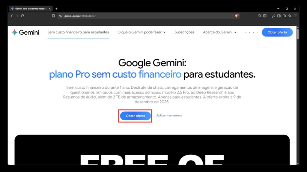 1. O primeiro passo consiste em aceder à página oficial da campanha para estudantes e clicar em "Obter oferta".