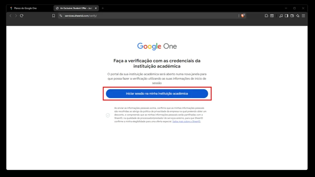 3. De seguida, terá de preencher um formulário com os seus dados e o nome da sua instituição de ensino. É importante notar que deve utilizar o seu e-mail pessoal da Google para a oferta, e não o e-mail institucional. Após submeter o formulário, o processo avança para a fase de verificação de elegibilidade, conduzida pela plataforma SheerID.