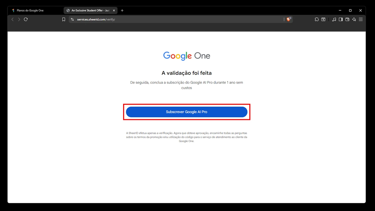 6. Finalmente, clique em "Subscrever Google AI Pro".
